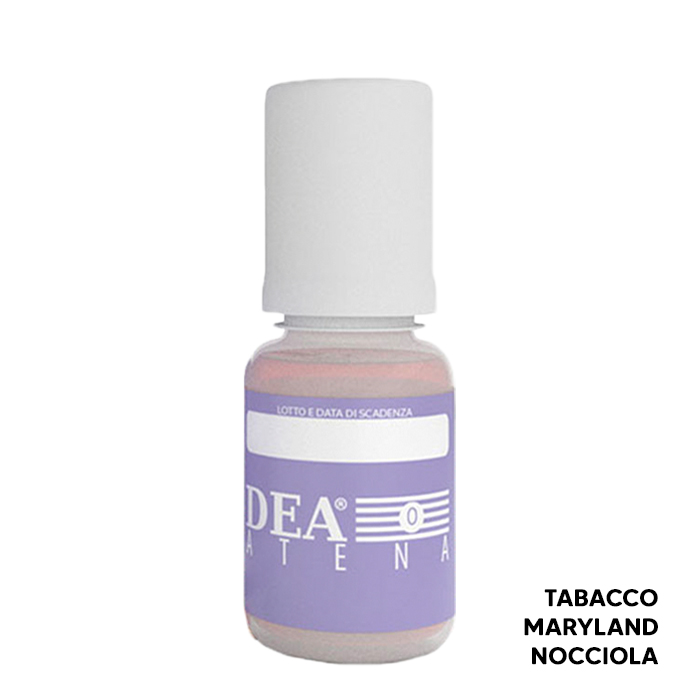 Il liquido pronto Atena del marchio Dea Flavor al gusto Tabacco Maryland e Nocciola può essere usato in atomizzatori a testina, pod mod o in atomizzatori rigenerabili.