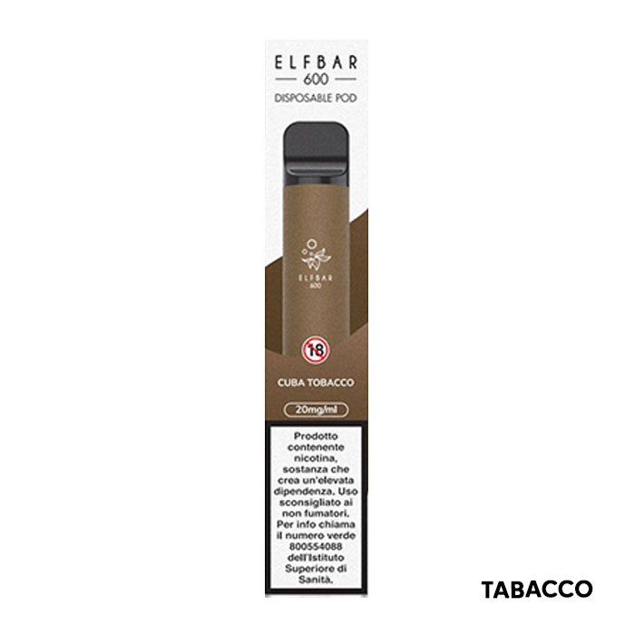 Cuba Tobacco Elfbar è una sigaretta elettronica usa e getta con coil integrata e pod pre-caricata con 2ml di liquido a 20mg/ml sali di nicotina oppure senza nicotina.