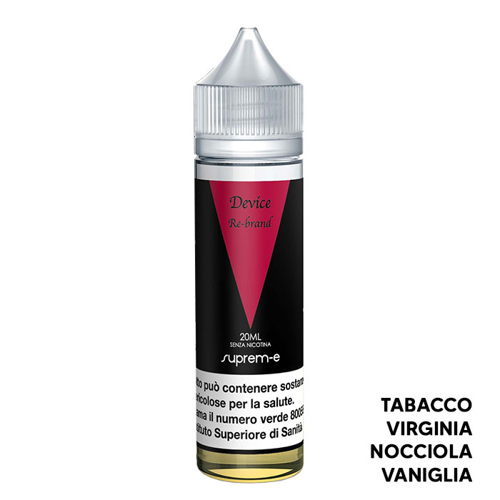 Device Re-brand di Suprem-e è un aroma scomposto al gusto di Tabacco, Virginia, Nocciola e Vaniglia.