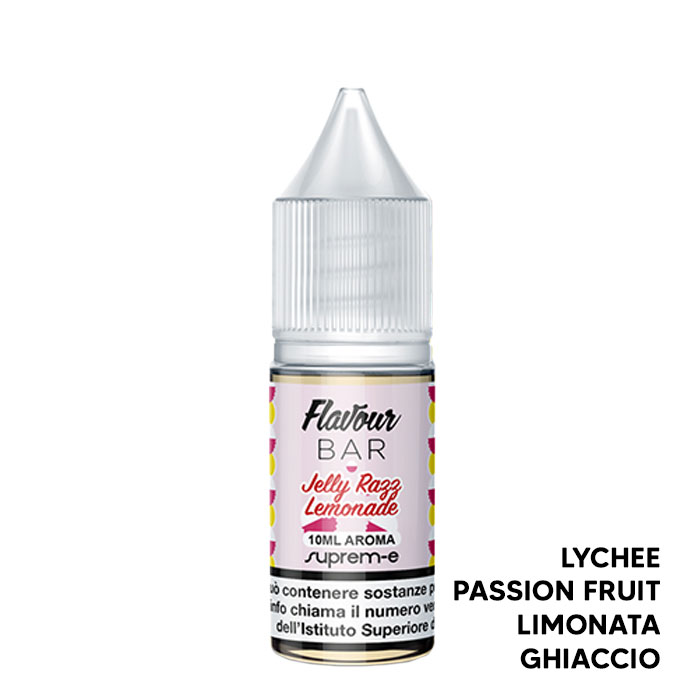 Jelly Razz Lemonade di Suprem-e è un aroma concentrato al gusto di Lychee, Limone e Ghiaccio.