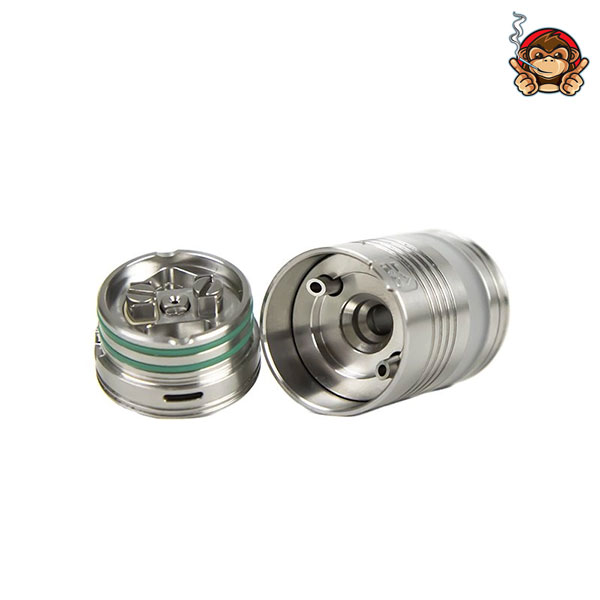 L’atomizzatore è costruito in acciaio inossidabile e possiede un tank in policarbonato frosted della capacità di 2,7ml, che alimenta la resistenza tramite un sistema di gocciolamento del liquido dall’alto verso il basso. Il deck single coil è dotato di due incavi su cui appoggiare il jigger, così da facilitare le operazioni di rigenerazione, e viti a croce: vi si accede “stappando” l’atomizzatore.
