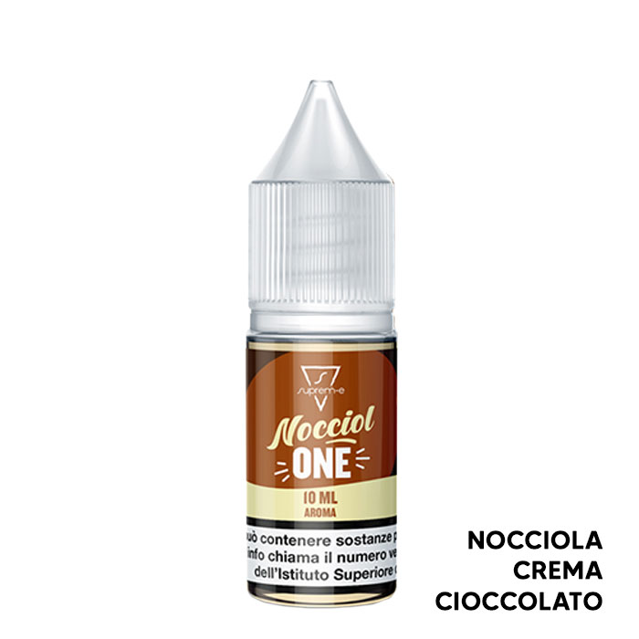 Per ottenere il liquido finale Suprem-e Nocciolone pronto all'uso, oltre all'aroma contenuto nella boccetta, va aggiunta la base neutra con o senza nicotina, in base alla percentuale di diluizione riportata sull'etichetta dell'aroma concentrato Nocciolone Suprem-e.