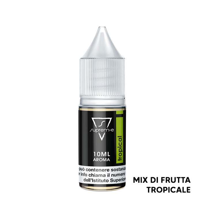 Per ottenere il liquido finale Suprem-e Tropical pronto all'uso, oltre all'aroma contenuto nella boccetta, va aggiunta la base neutra con o senza nicotina, in base alla percentuale di diluizione riportata sull'etichetta dell'aroma concentrato Tropical Suprem-e.