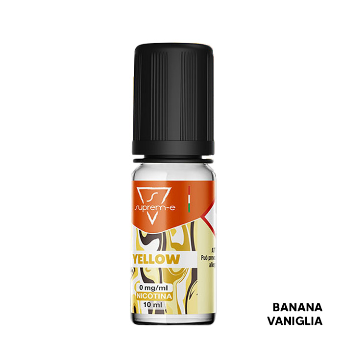 Il liquido pronto Yellow del marchio Suprem-e al gusto Banana e Vaniglia può essere usato in atomizzatori a testina, pod mod o in atomizzatori rigenerabili.